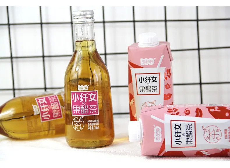 百芝源推出的“小纤女果醋茶”,将果醋和茶两个传统品类跨界融合,推动茶饮料和果醋饮料创新升级。产品精选正山小种红茶搭配发酵果醋,并添加冷压苹果汁,果+醋+茶”三重加持,助力肠道健康,兼具营养和口感。产品不含0脂肪,瞄准年轻爱美女士。