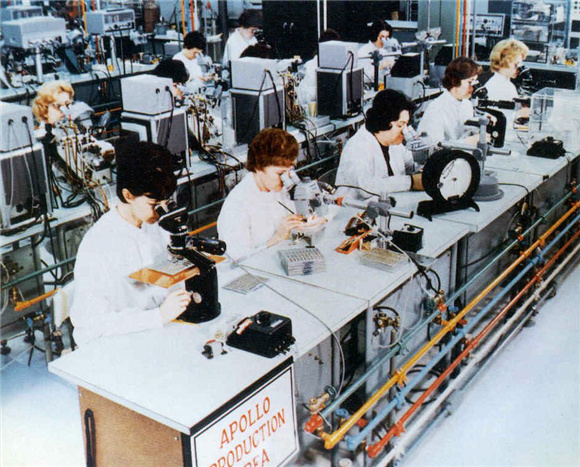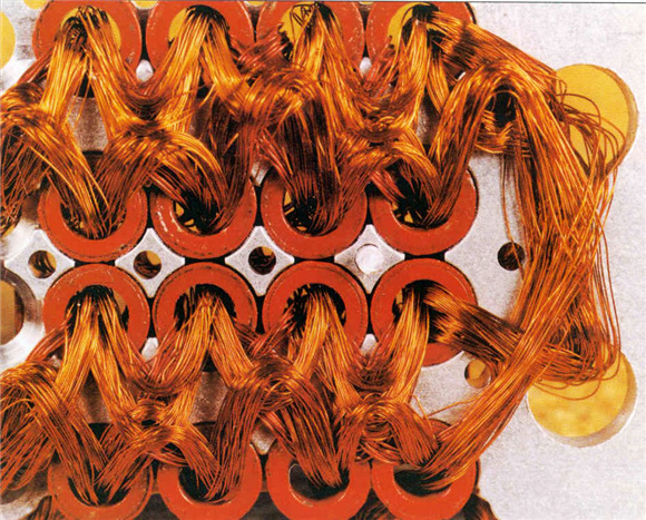 对玛格丽特来说,编程就像是在一沓穿孔卡片上穿孔,可以整夜整夜分批在一台模仿阿波罗登月工作的霍尼韦尔(Honeywell)大型主机上进行。玛格丽特回忆说,“我们必须在飞船起飞之前模拟各种可能发生的情况”。一旦代码确定后,就会被送往附近一家雷神公司(Raytheon)的厂房。那里有一群“擅长针线活”的妇女,她们在阿波罗项目中被称为“小小老妇人”,她们将铜线穿过磁环(穿过磁心的代表1,绕过磁心的代表0)。没有RAM,也没有磁盘驱动器;在阿波罗号上,存储器靠的就是硬接线,而且可以说是无坚不摧。