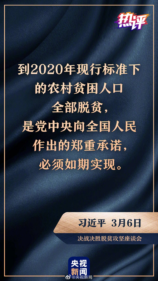 习近平总书记6日出席决战决胜脱贫攻坚座谈会并发表重要讲话。讲话具有很强的指导性和针对性,明确回答了该怎么打赢脱贫硬仗突然遭遇疫情这一问题。习近平总书记强调,到2020年现行标准下的农村贫困人口全部脱贫,是党中央向全国人民作出的郑重承诺,必须如期实现!