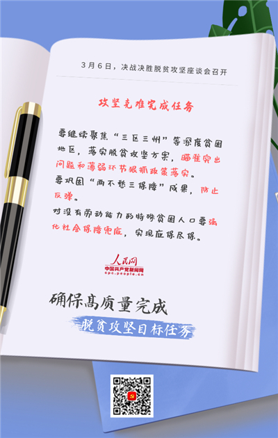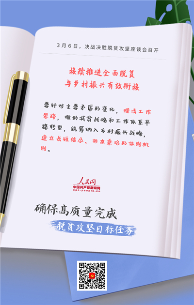人民网·中国共产党新闻网制作系列海报,带您速览决战决胜脱贫攻坚座谈会有哪些“干货”要点。