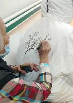 有在护士防护服上手绘牡丹图以表感激的93岁老奶奶;