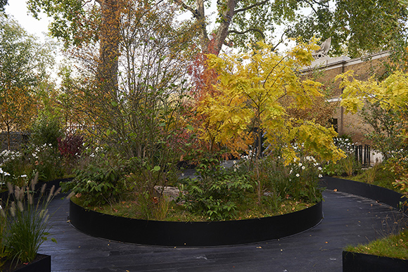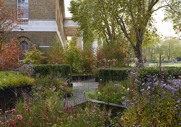 从这座英国著名景观设计师Harry与David Rich主持构建的当代英伦花园起,沿着小路便可步行至萨奇画廊。