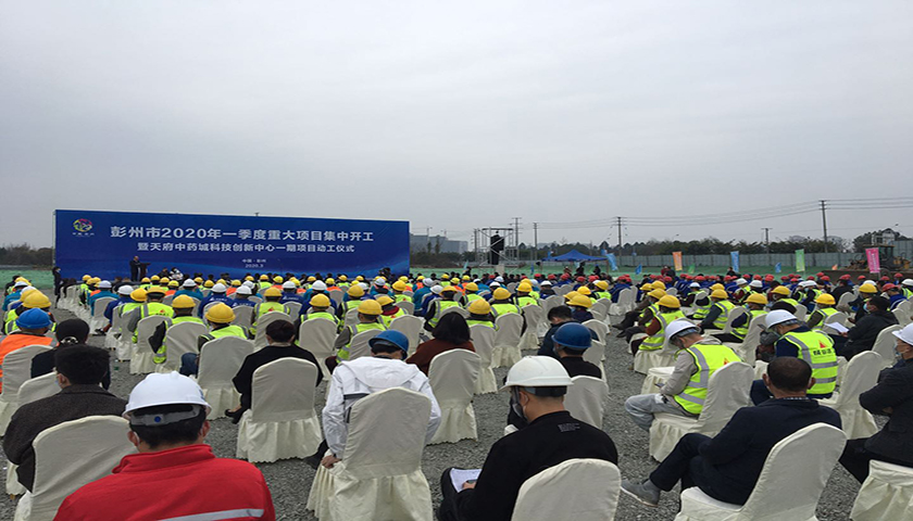 3月8日上午10点30分,四川省彭州市在天府中药城举行2020年一季度重大项目集中开工仪式,天府中药城科技创新中心、万达城市综合体等20个总投资162.79亿元的重大项目集中开工,启动建设。彭州本次举行项目集中开工仪式,旨在贯彻落实国家、省和成都市统筹推进疫情防控和经济社会发展工作部署,以项目投资为抓手摁下彭州经济社会全面发展的“快进键”。