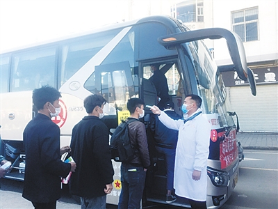 凉山州昭觉县外出务工人员乘坐“春风行动”专车安全有序地返岗就业。阿克鸠射摄/光明图片