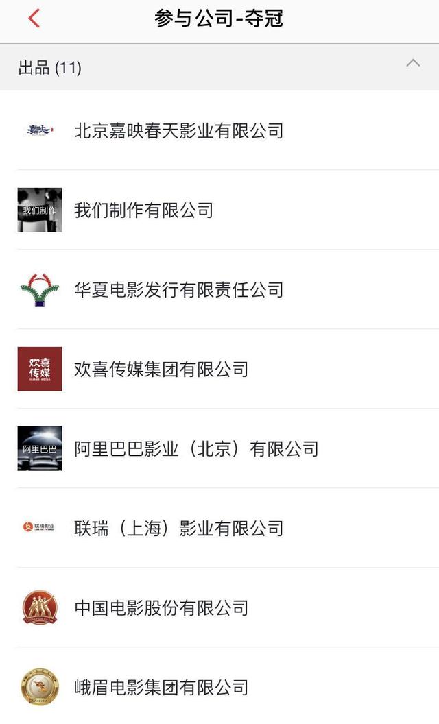 如今年春节档今年春节档背后影视公司超过100家,巨头们领投,腰尾部公司组盘。欢喜传媒春节档除了参与《囧妈》出品,还有《夺冠》,而《夺冠》背后还有嘉映春天影业、华夏电影、阿里影业等。电影背后的组合盘,利益关系牵连比想象中复杂,大部分是利益共同体。