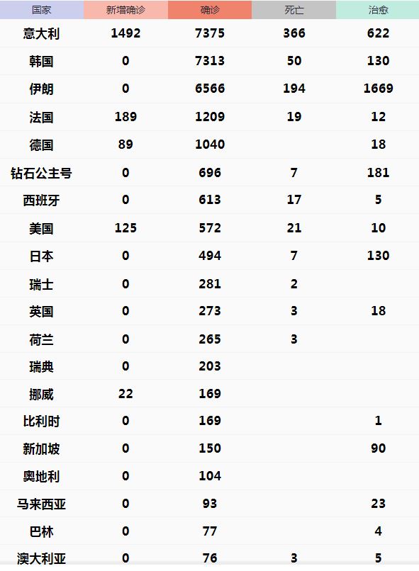 韩国24小时新增248例新冠肺炎病例,累计确诊7382例,死亡增至51例,治愈增至166例。累计确诊病例再次超过意大利。