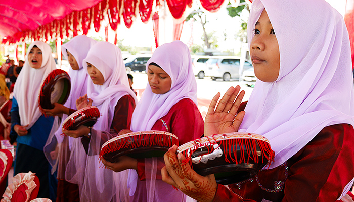 除了沉重的历史,主宾国大厅还展现了印尼美食与文化。主宾国展厅外有穿着彩色民族衣服、敲打着民族鼓的印度尼西亚人载歌载舞,展厅内则充满了诱人的香味:印度尼西亚特色美食,如酸炖菜、花生酱沙拉、晒干的各类香料(不同种类植物的叶子、根茎、粉类和坚果食品等)占领了大厅。