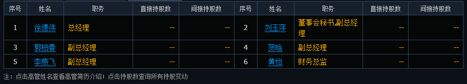 去年10月8日,天神娱乐管理层发生变更,原先的副总经理李春、尹春芬和财务总监相卫轻辞职。由徐德伟出任总经理,郭柏春、刘玉萍、贺晗、李燕飞四人任副总经理。