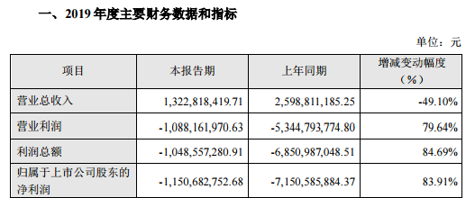 继2018年因计提40.9亿元商誉减值巨亏71.5亿元后,2019年再度亏损11.51亿元,眼下公司还有36.5亿元有息债务待解。