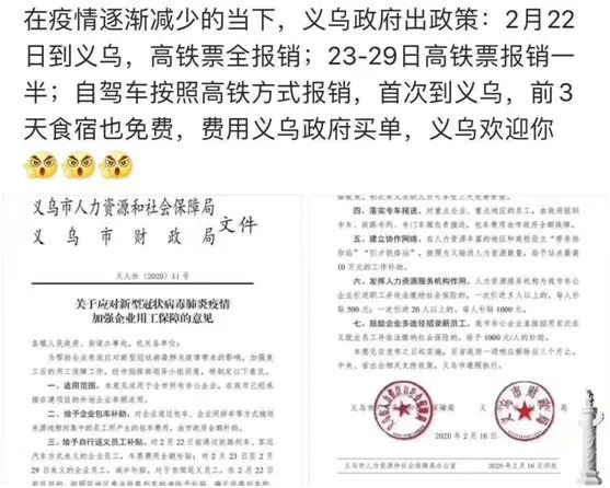 与此同时,招纳新员工也迫在眉睫。义乌全力支持复产复工,对企业招录的新员工每人补助1000元;湖州市更是大手笔,直接拿出1亿元,对企业新招员工给予1000元/人的一次性生活补助,对带超20个外市人员前来就业的人,给予200元/人的一次性奖励……诸如此类的花式入职大礼包简直不胜枚举。