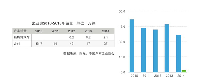 从那之后,比亚迪将更多的精力和资源转移至新能源汽车业务。但是受限于国家政策、价格因素以及市场成熟度等原因,直到2013年年底“秦”的出现和鼓励新能源汽车相关政策的出台,比亚迪新能源汽车业务才出现小爆发,不过付出的代价就是集团整体汽车销量波动较大。
