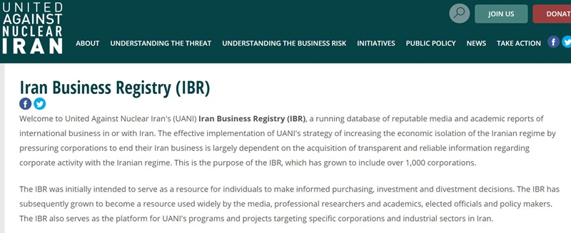 “联合反对核伊朗”则专门设立了一个名为“伊朗公司登记”的名单,列出了获得特别许可证的制药、生物科技和医疗器械公司。