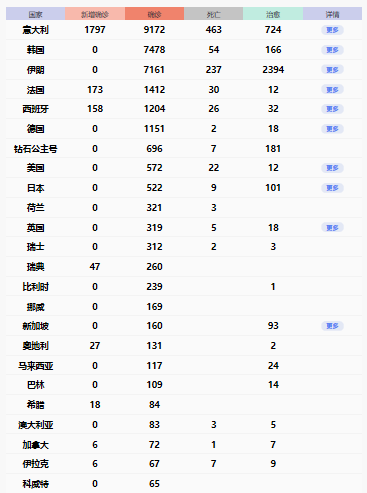 1730【除中国外,100多个国家和地区累计确诊新冠肺炎33251例】