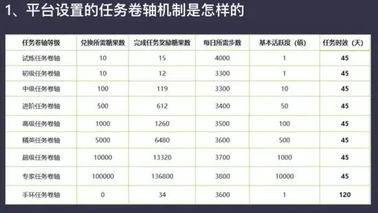 ▲趣步官方给出的任务卷轴价格、收益与回报周期
