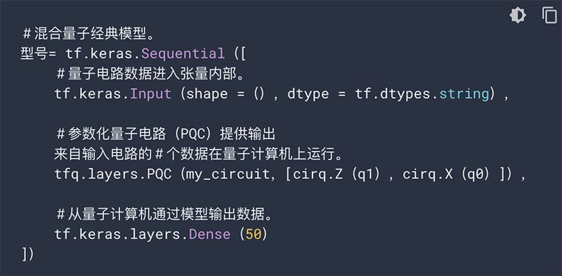 第三层是量子层和微分器,当与经典TensorFlow层连接时,它们可实现混合量子-经典自动区分。