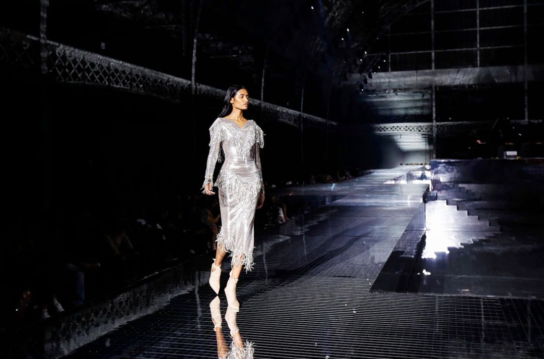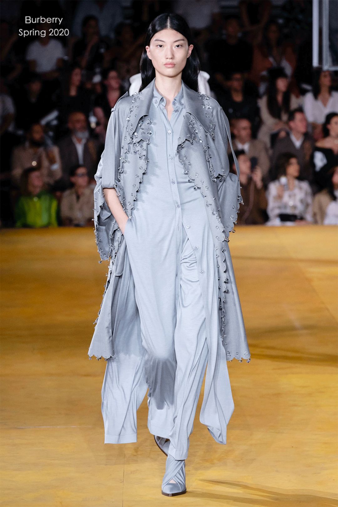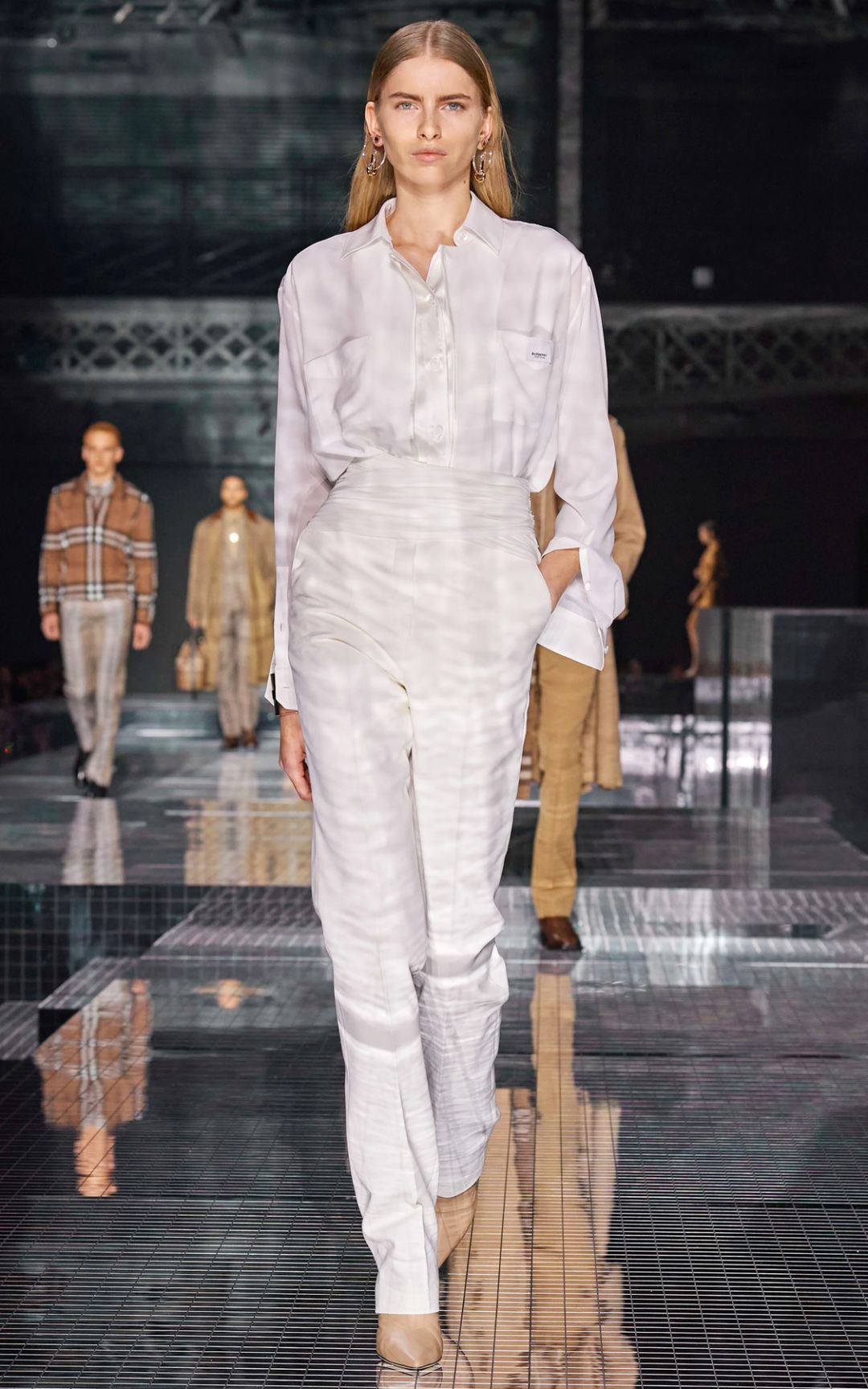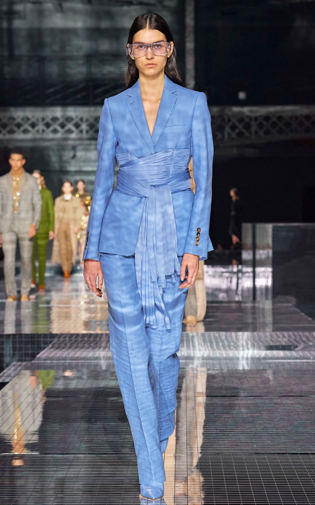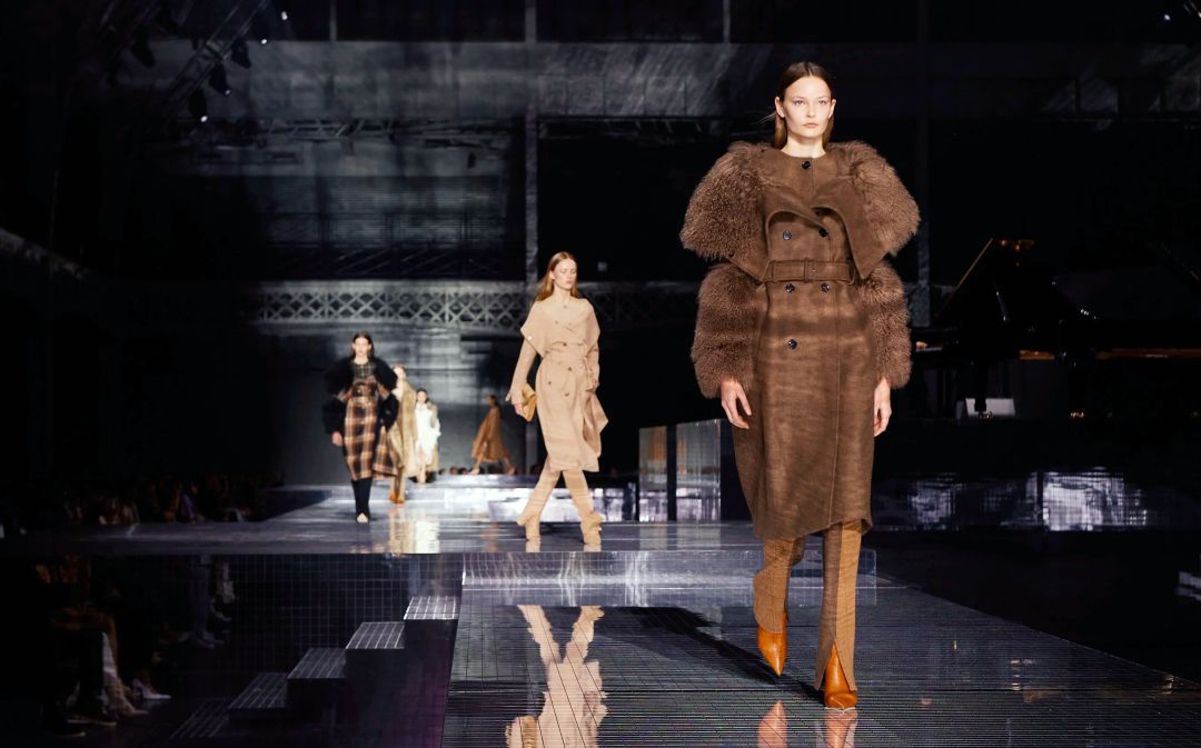 根据主题,Burberry搞了个巨大的镜面回廊,波光粼粼的光影从镜子倒影在模特身上,衣服看起来就像打上了一层流动的滤镜,有种虚幻透向现实的感觉,好美……