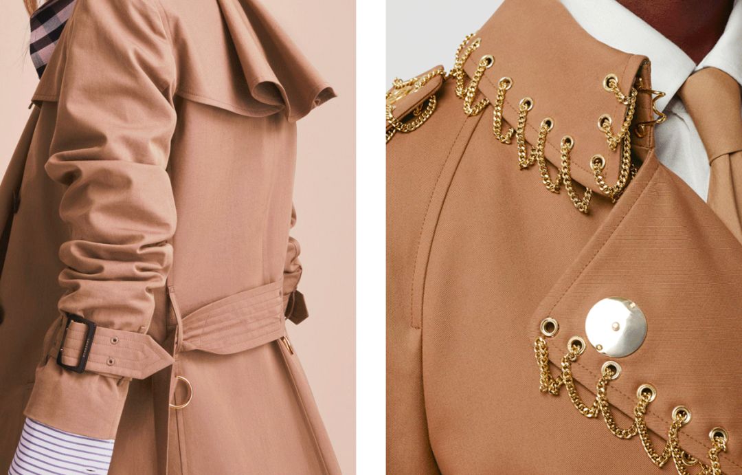还在原有的Burberry经典风衣版型外,他又捣鼓出了三种新的版型。简单来说,就是比起之前更随性自由、更宽松,有的融入了插肩袖等设计。