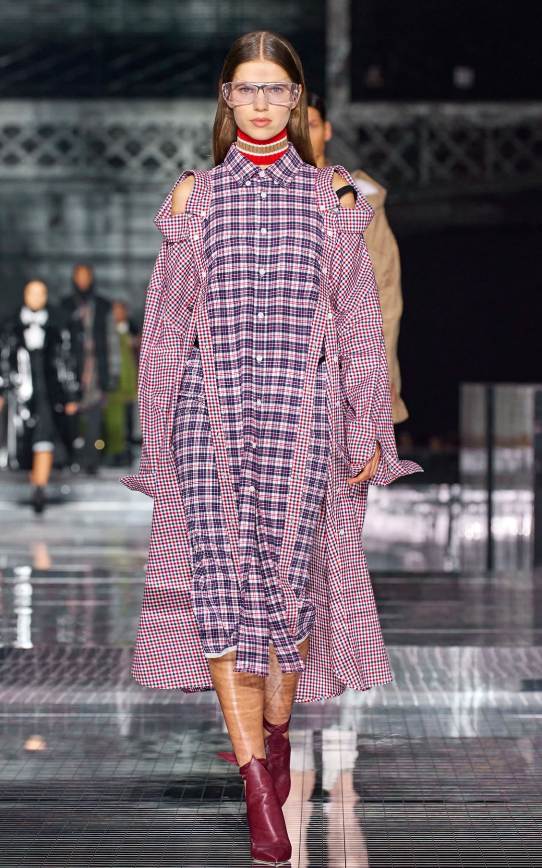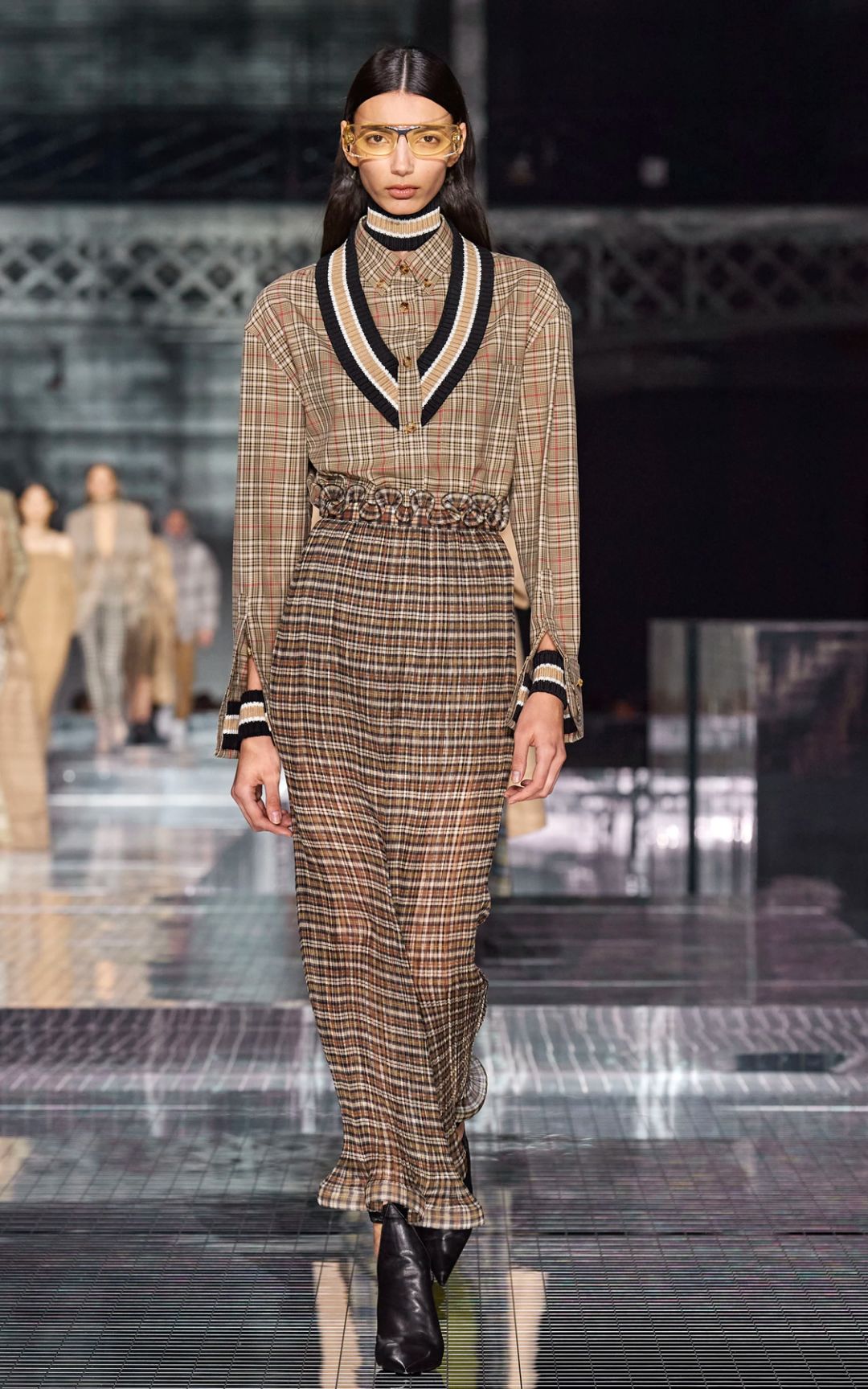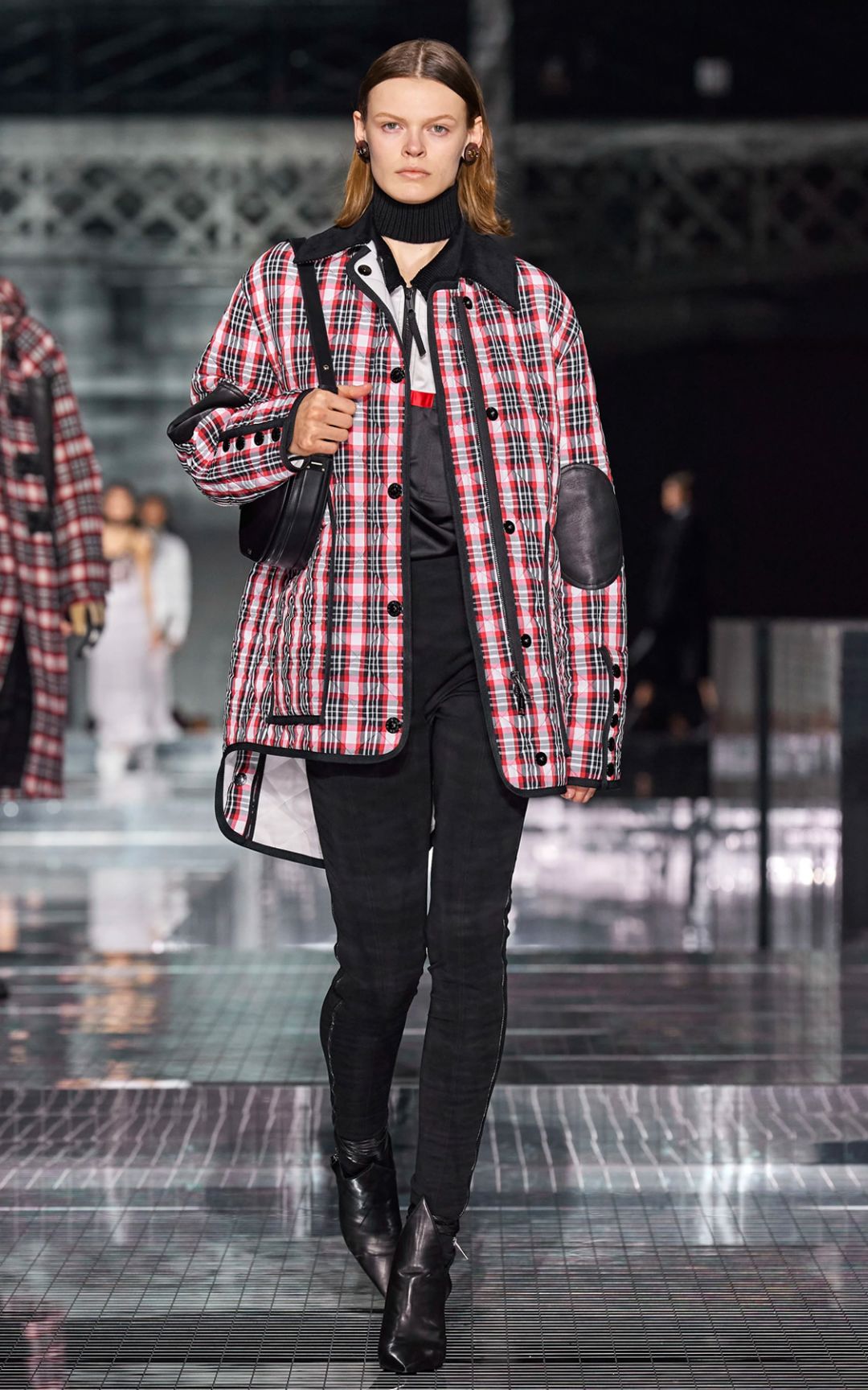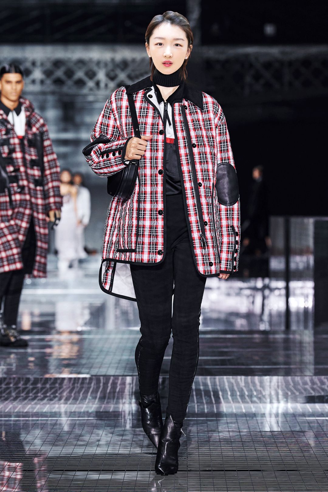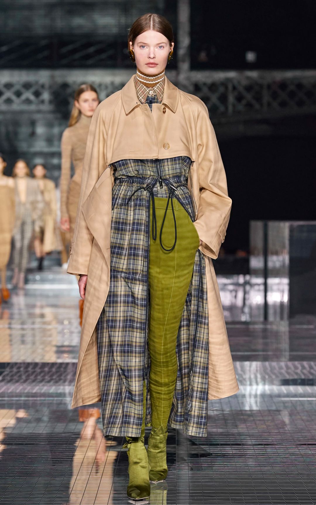 有几个look甚至还能看到三种以上不同格纹单品的叠穿……这些线条像五线谱似的,抢眼的重音、轻盈的高音,交织在一起,共同凑出一首属于Burberry的歌。