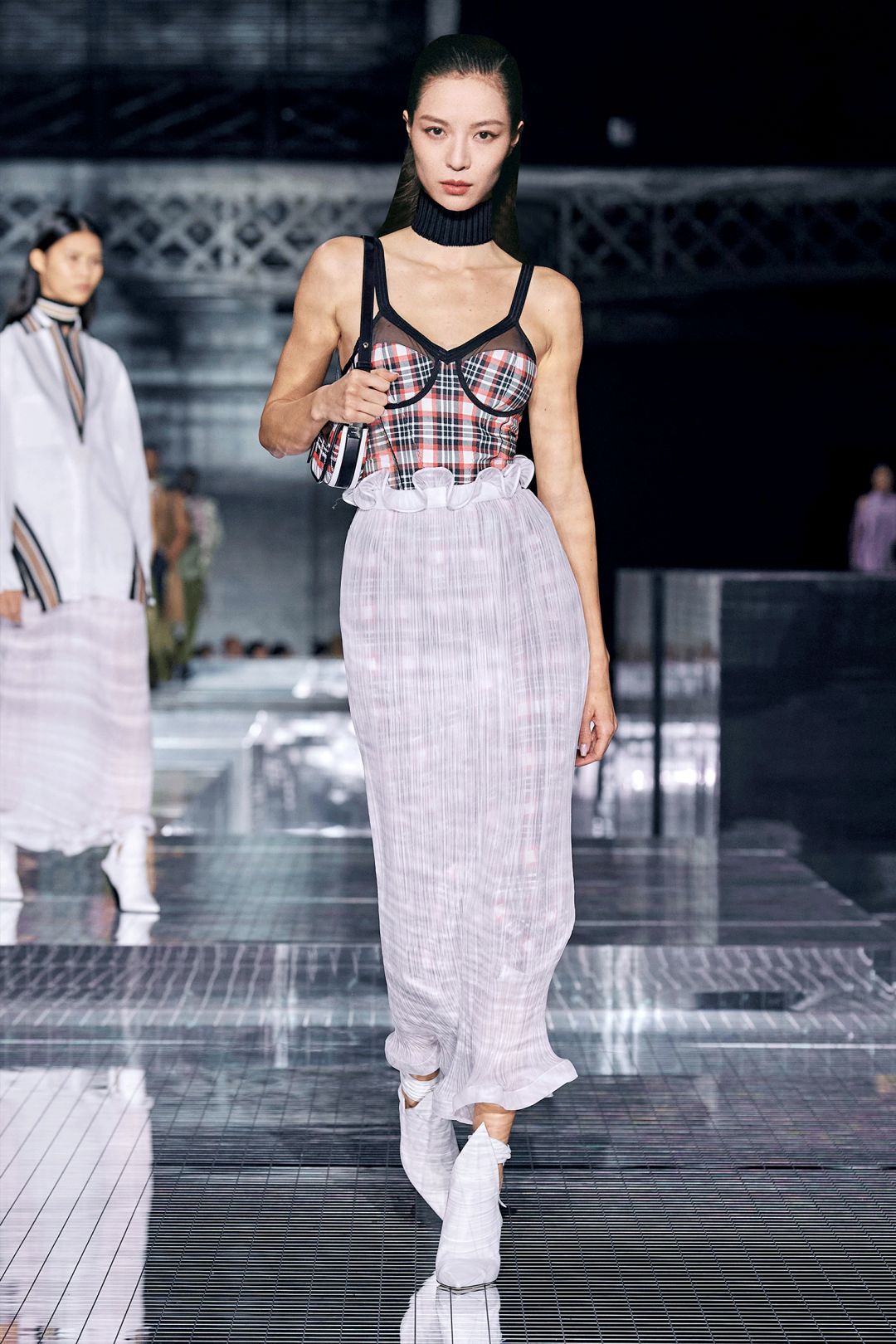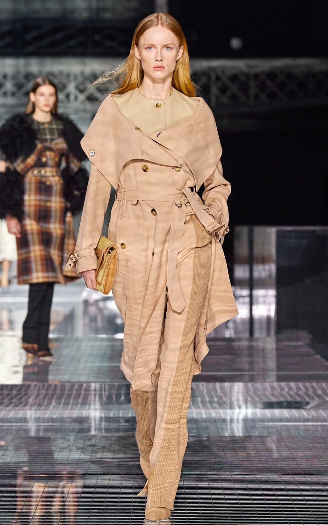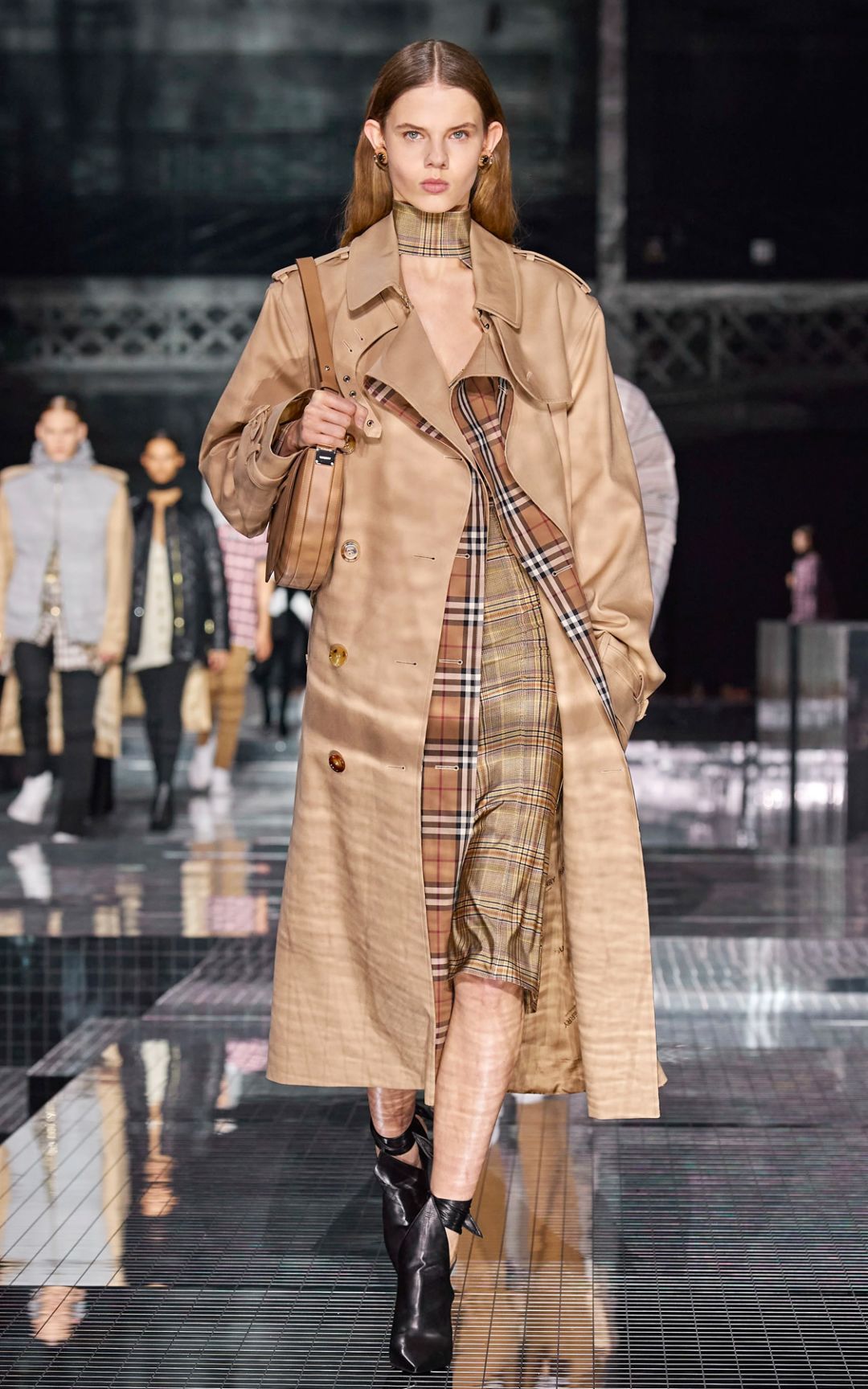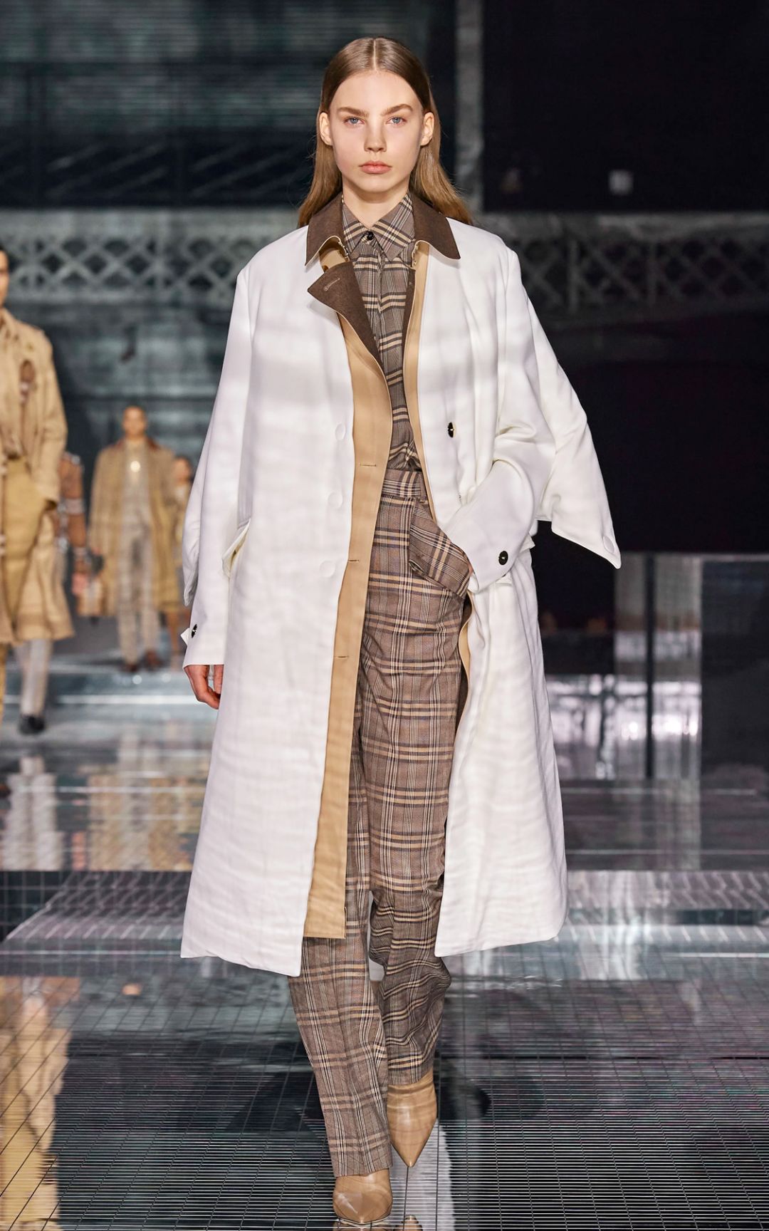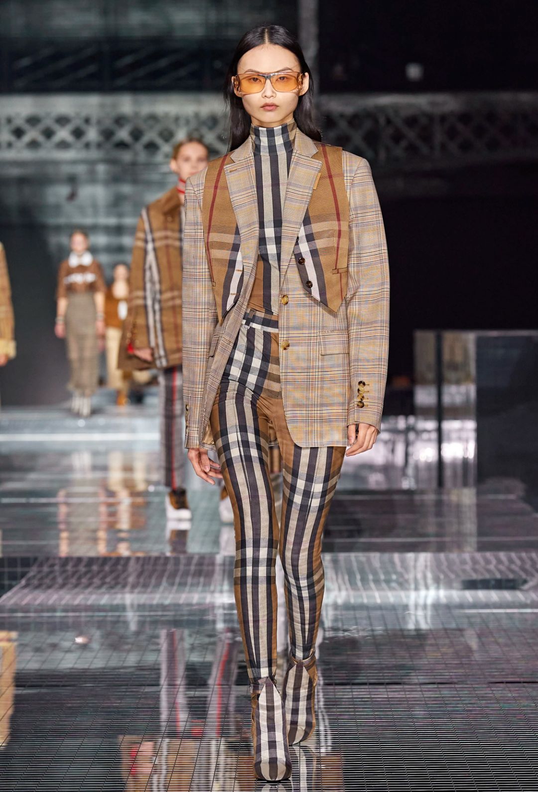 有几个look甚至还能看到三种以上不同格纹单品的叠穿……这些线条像五线谱似的,抢眼的重音、轻盈的高音,交织在一起,共同凑出一首属于Burberry的歌。