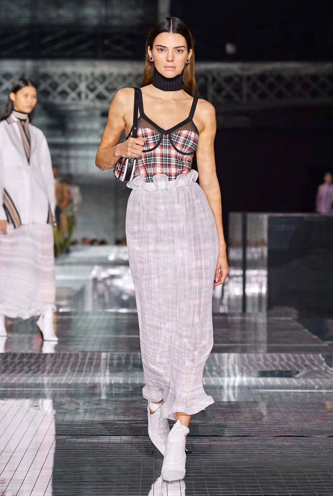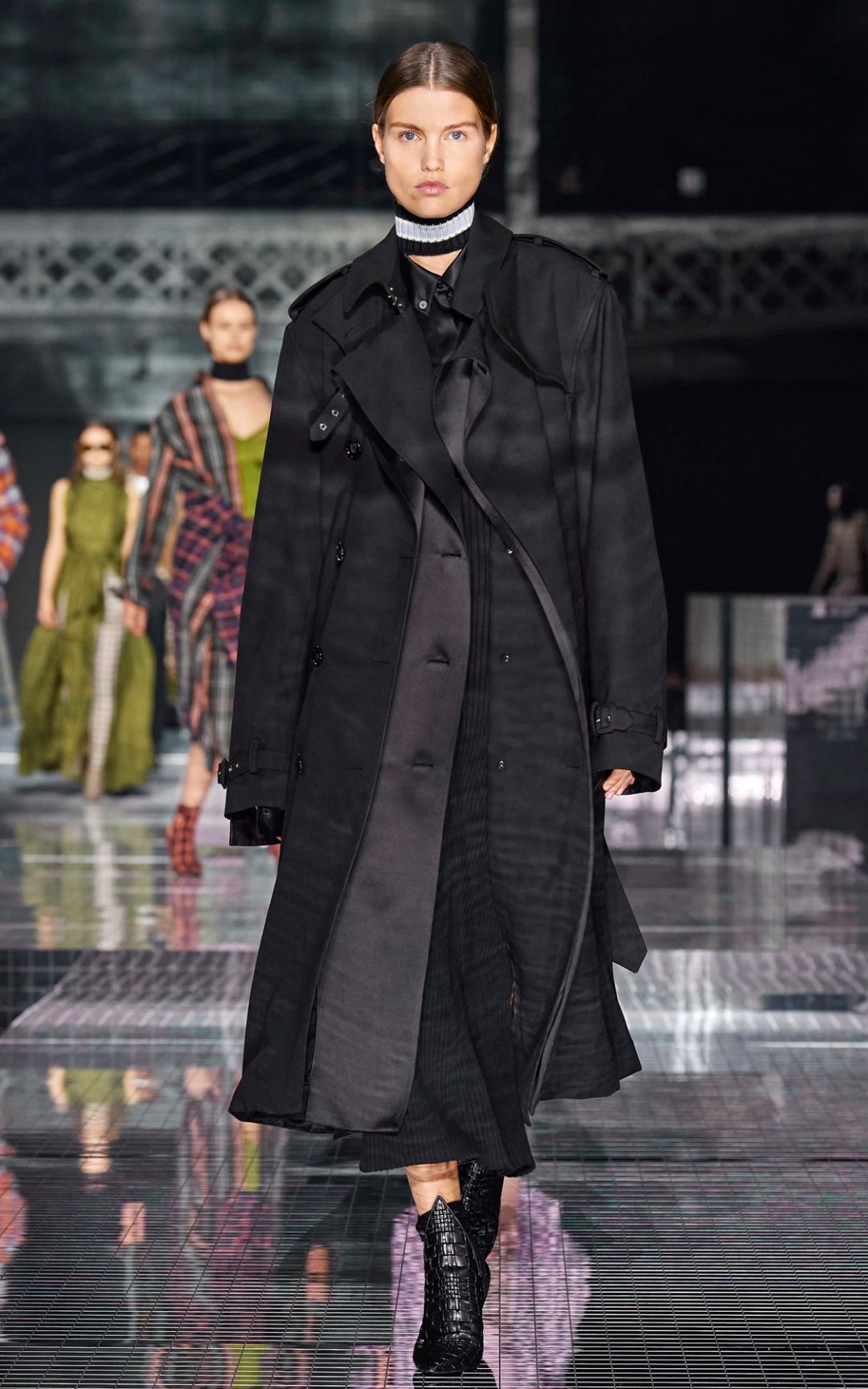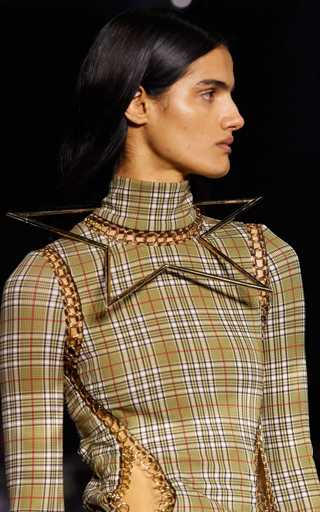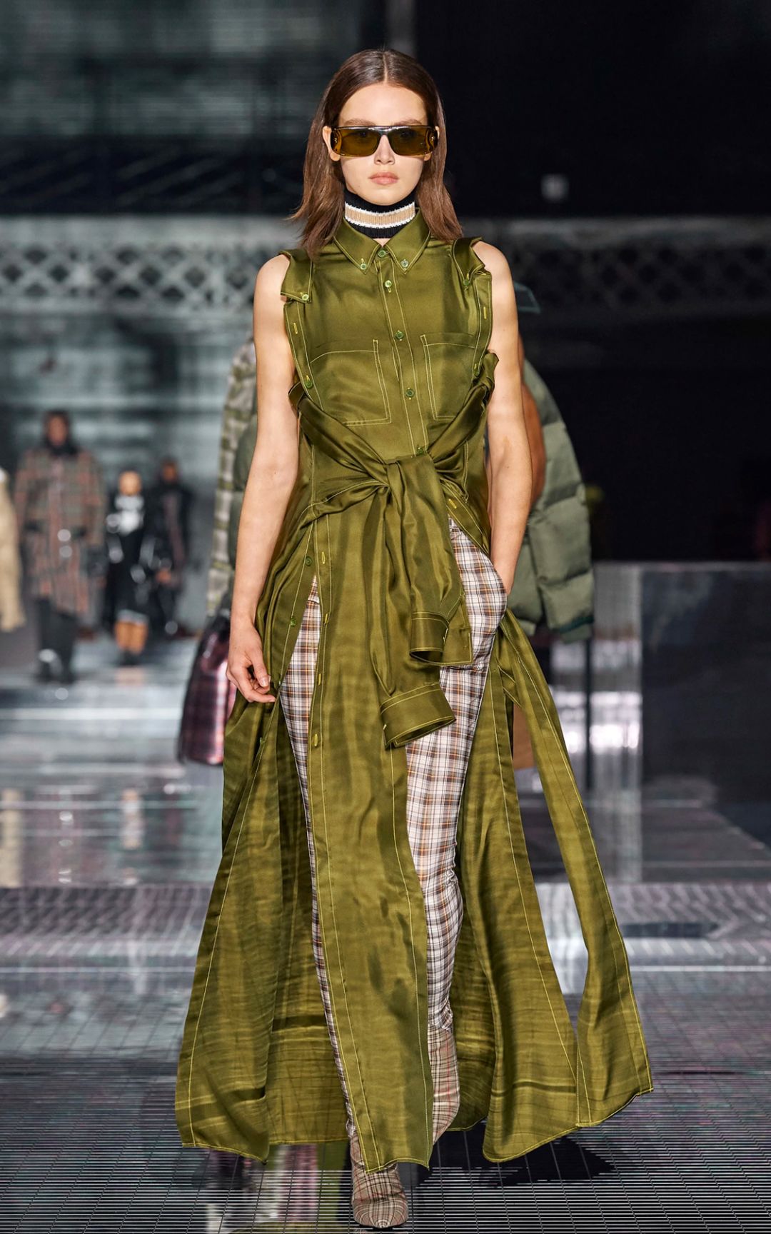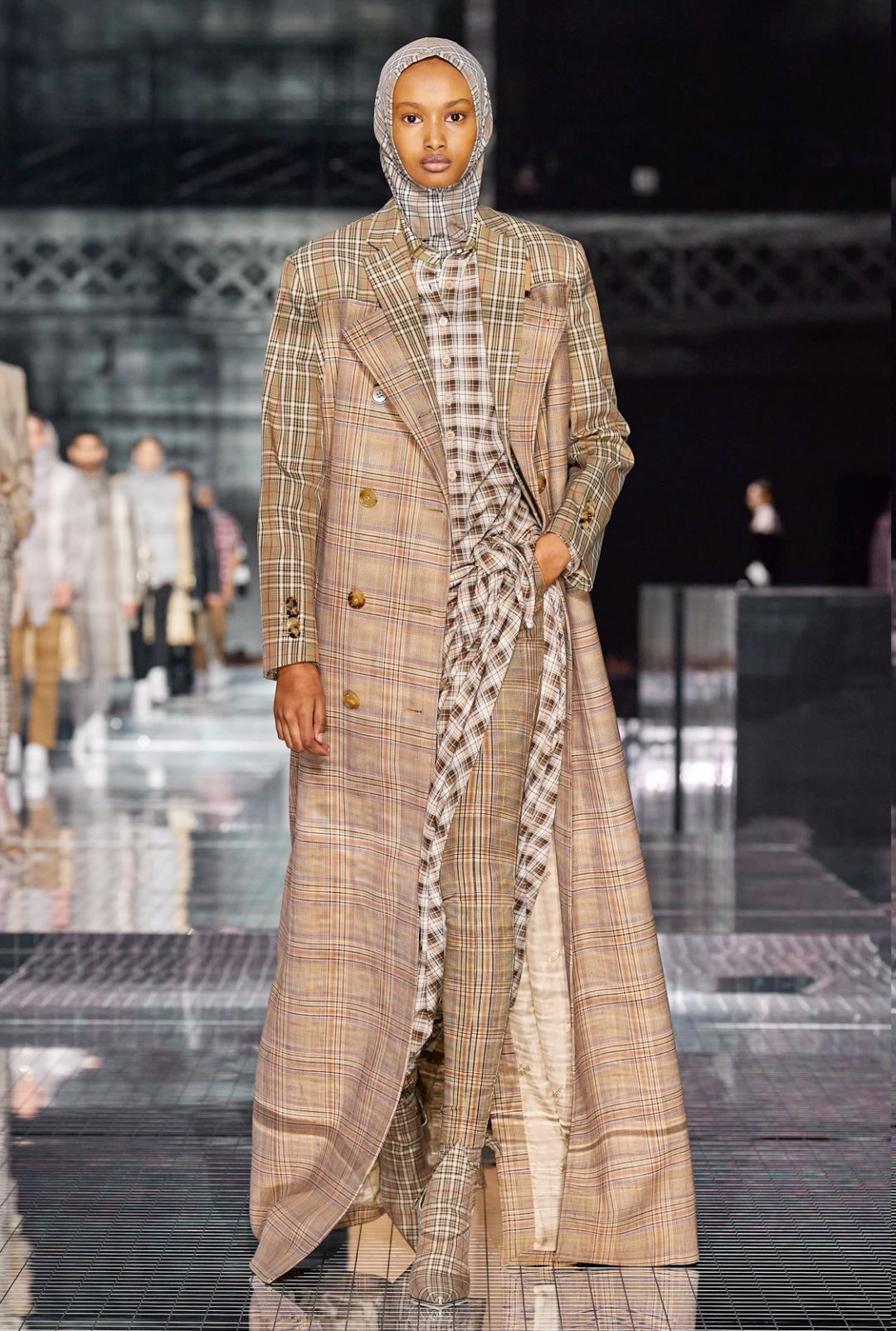 有几个look甚至还能看到三种以上不同格纹单品的叠穿……这些线条像五线谱似的,抢眼的重音、轻盈的高音,交织在一起,共同凑出一首属于Burberry的歌。