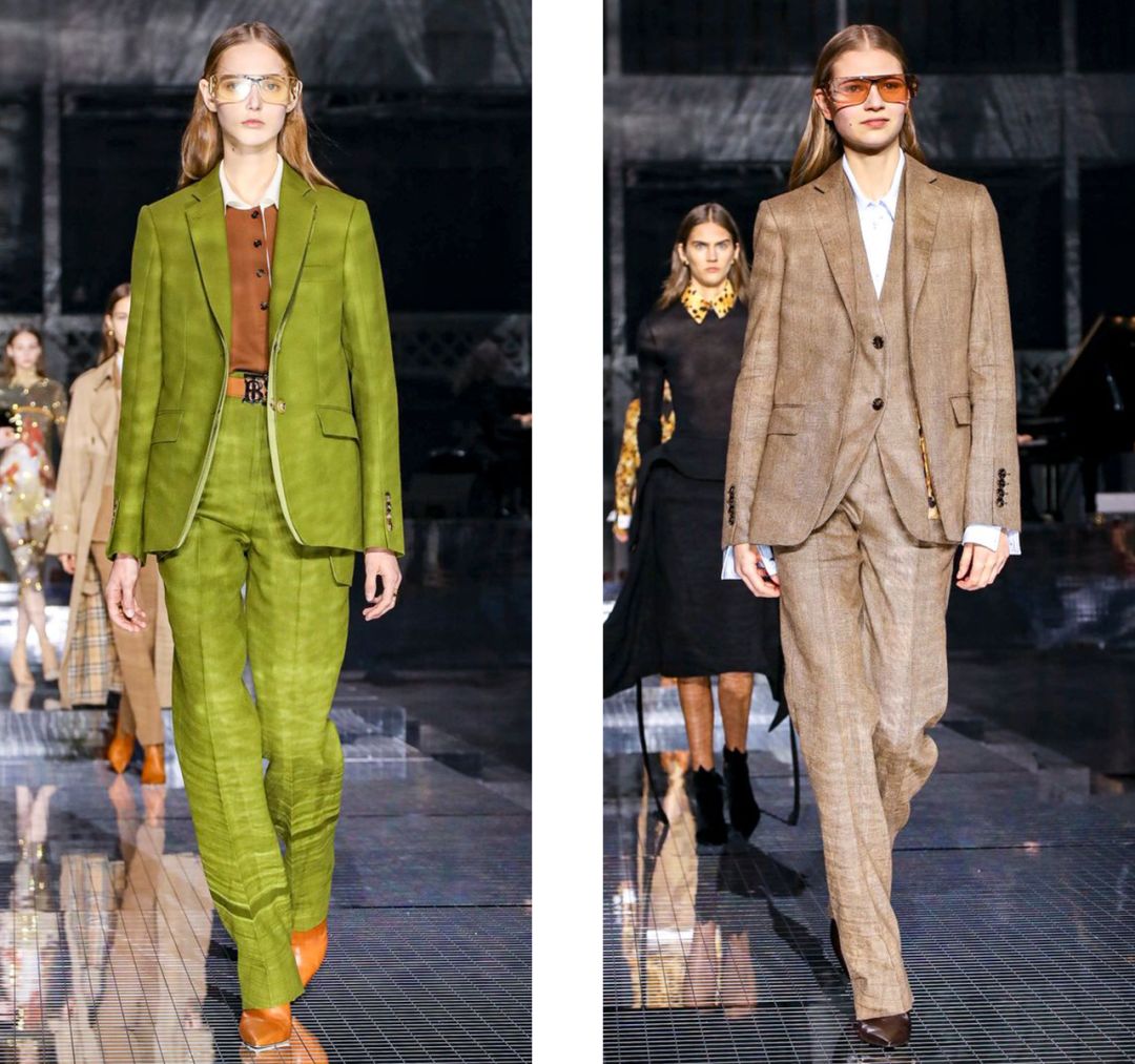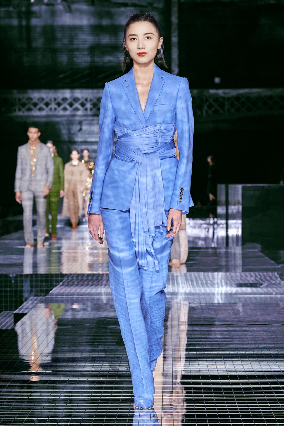 包括几身女士西装。版型也变得中性经典,好多都是按照男士西装的三件式来的。