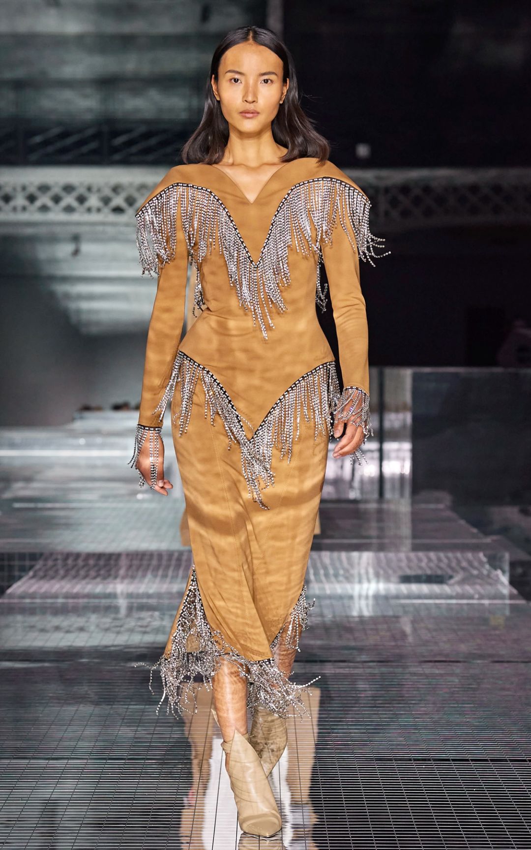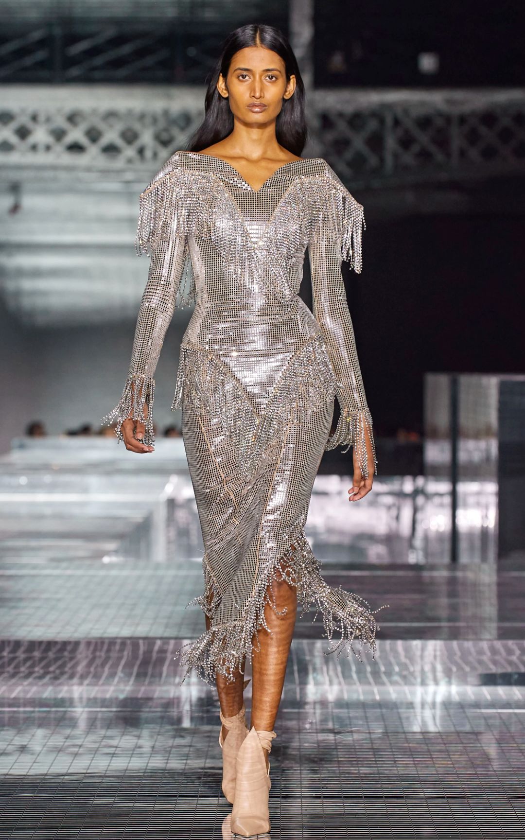 夸张的肩膀设计和Bling Bling的流苏,像是一个光彩夺目的水晶灯,Drama。