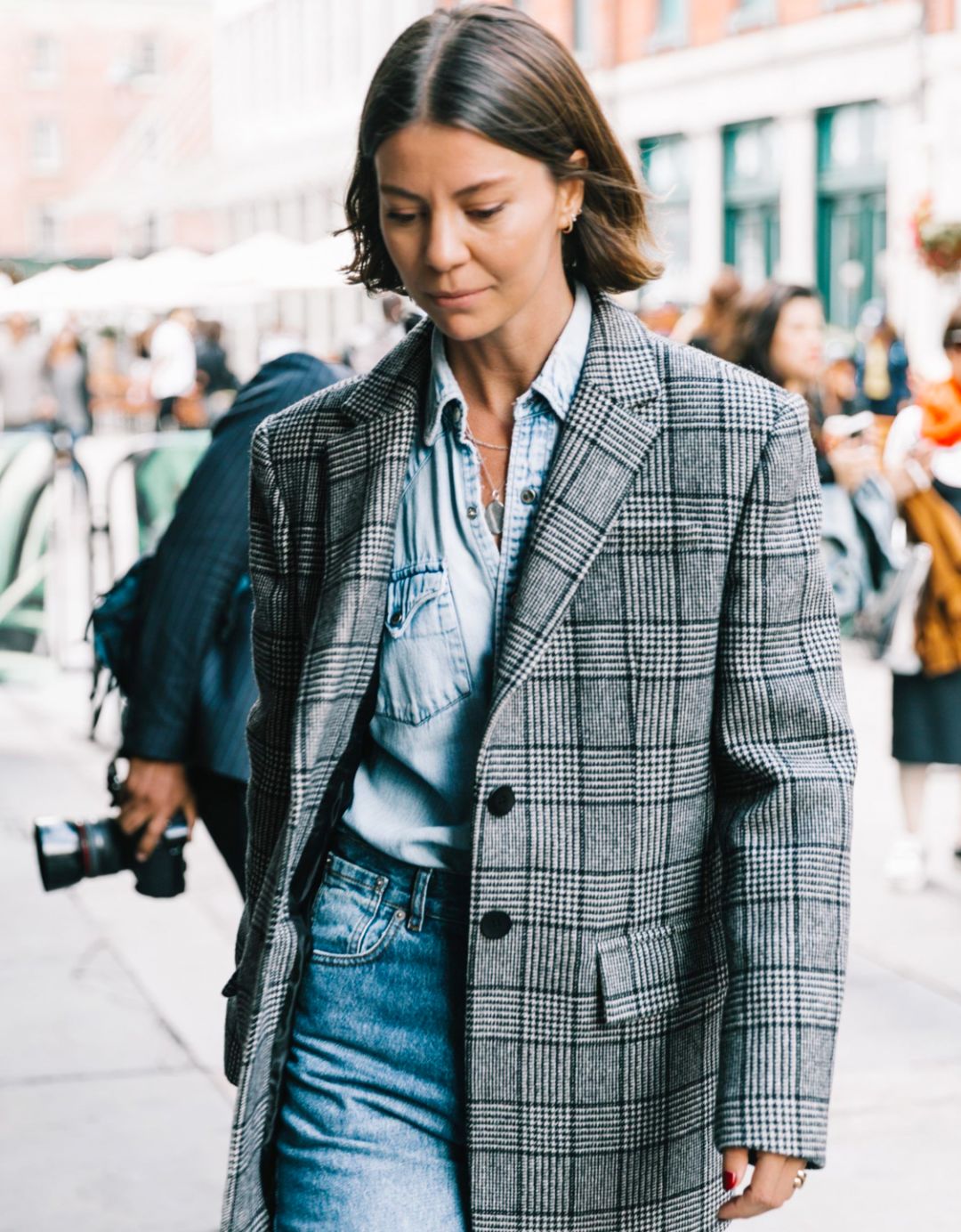 说实话,我还是最喜欢这件米驼色系的,复古又高级,格纹再多再乱,也看上去舒舒服服的。模特的裤子就不必了,换个牛仔裤就很好看。