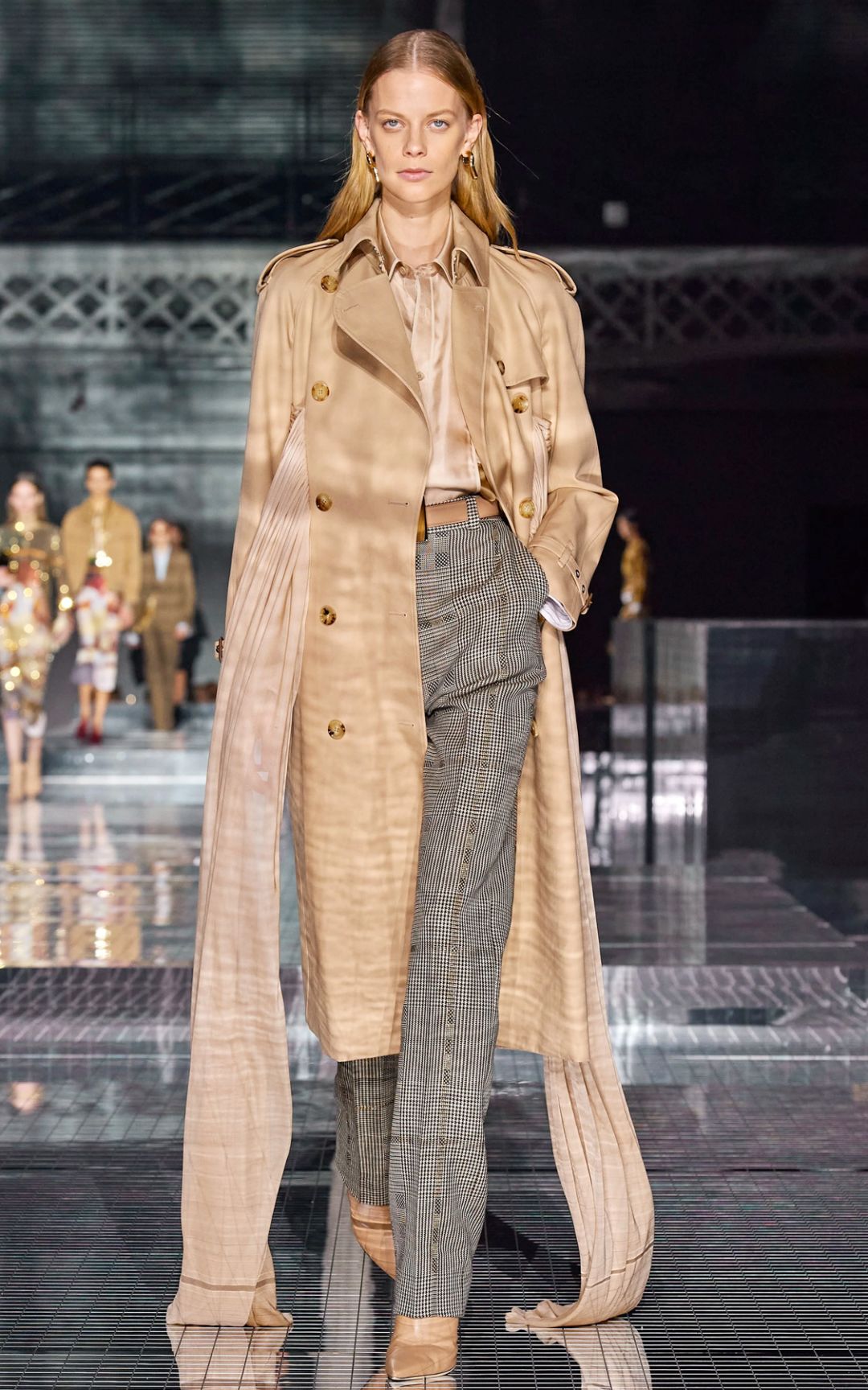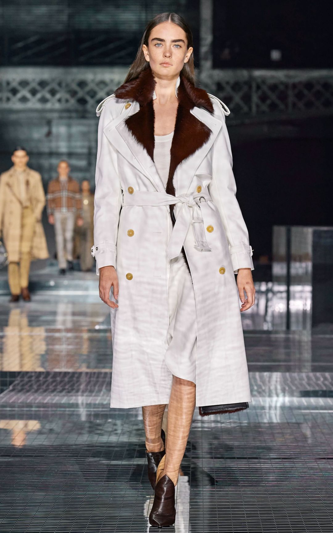 但现在大家买Burberry,哪在乎这个,好看时髦是第一位。所以Riccardo用了好多不同的面料做风衣。