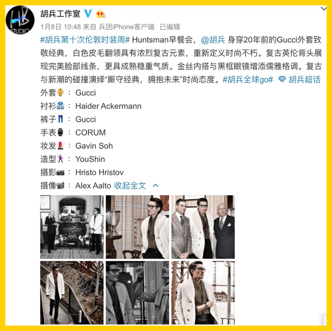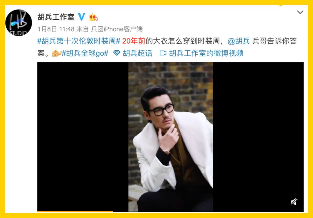 他最中意的造型还会专门拍视频介绍,“20年前的大衣怎么穿到时装周,兵哥告诉你答案”、“不管在时装周还是某个城市的街头,兵哥教你有风度的穿搭”