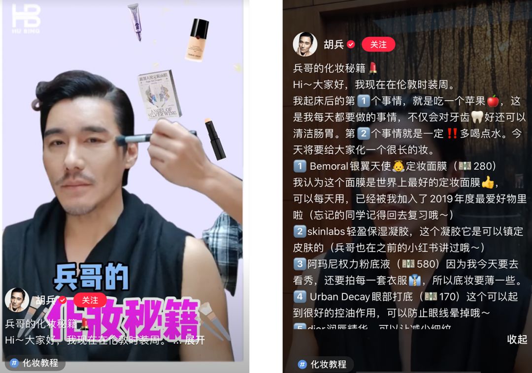 小红书也发得很认真勤奋。从产品测评到美妆教程,没有他不精通的,还贴心配上文字,说明步骤和流程,女明星看了也自叹不如。