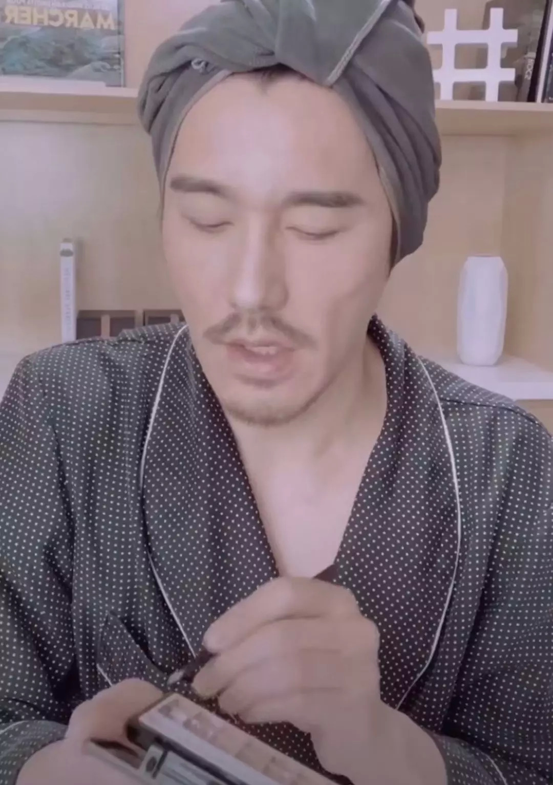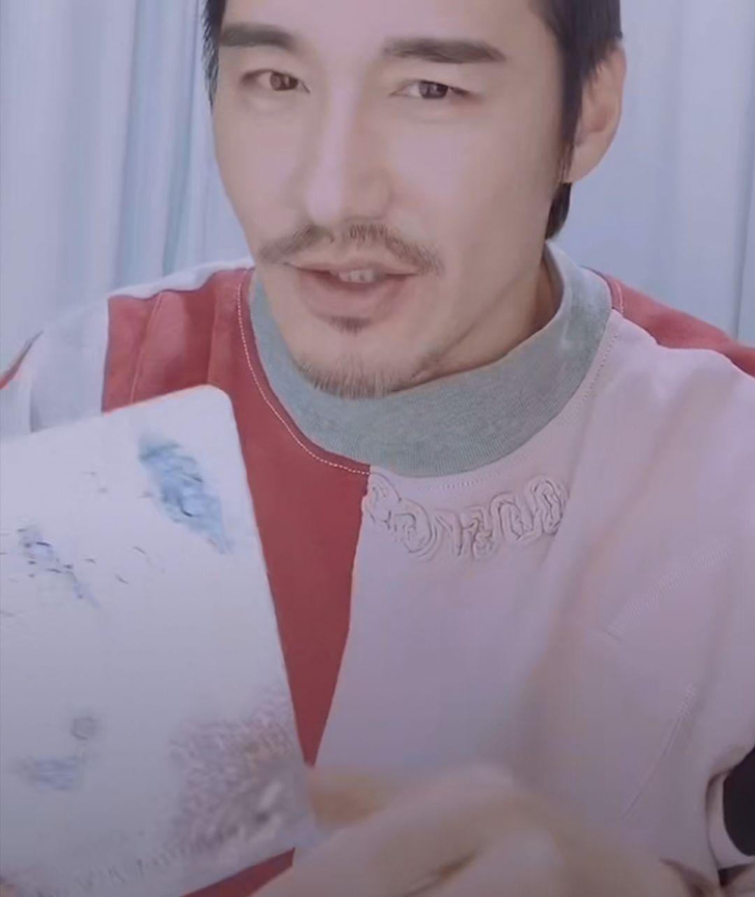 据我观察,他很在意妆前的步骤,每次化妆前一定会用一片定妆面膜,更容易上妆。精致如他,还找品牌特别定制了适合自己脸的大小的面膜。