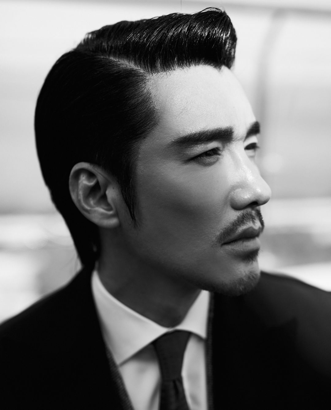 仔细观察一下,他的发型也是很有标志性的,大部分都是复古油头,跟他的造型也搭。