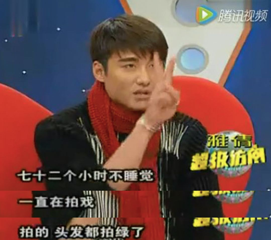 转行做演员,他也挺努力的,熬夜拍戏也挺能坚持,他自己在节目里说,有次拍了72小时没睡觉,头发都拍绿了……