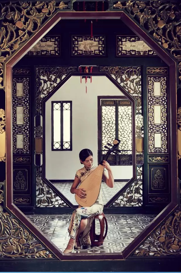 着一袭旗袍,抚琴音,阅尽千帆眼决眦。举手投足间尽显古典与曼妙,宛如中国古老青花瓶里开出的一朵郁金香。