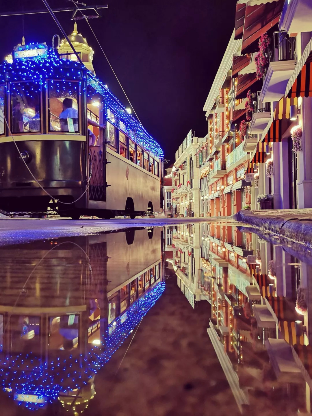华灯初上 ,夜色阑珊,坐上繁星点缀的旧上海民国“电车”,列车远远驶去,仿佛穿越到上海滩,就是置身那个年代。