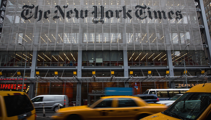 千禧年之初,就在建筑师 Renzo Piano 受命为纽约时报设计新的大楼之后,平面设计师 Michael Bierut 曾被委托设计大量俯瞰第八大道的标牌。“显然他已经想出了一个比喻,有意将新闻业比作社会透明度的推动者。”Bieru 回忆道。“我们都面临着一个问题,就是如何将一个大招牌挂在建筑的玻璃外墙上,并且不挡住任何人的视线。”Bierut 和设计公司 Pentagram 找到了一个简单的解决方案:“最终,我们将标牌本身分解为 800 个小块,每块的形状都像一滴泪。”这样一来,在大楼内工作的员工有了清晰的视野,而路人们则认为他们看着的标志是立体的。