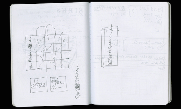 Bierut 的回顾展将分为四个部分:设计与城市、设计的过程、如何绘制建筑图纸以及平面标识搜索。这本书和这次展览的一个部分将会展示他草草记下灵感的笔记本中的内容。“我对像儿童、宠物、幸运符和安全毯等东西充满保护欲。”他说。其中的一页笔记展示了十年前萨克斯第五大道百货公司购物袋的设计图案解构模型。他还记得他公司里的一个设计师将其弄坏时的尖叫,当时 Bierut 立即跑去查看,并将其与 Franz Kline 或 Barnett Newman 的部分作了比较。“我记得那时我说‘等一下,我觉得可以做成像这样的 64 个正方形,每块都像一幅美丽的抽象画。'"