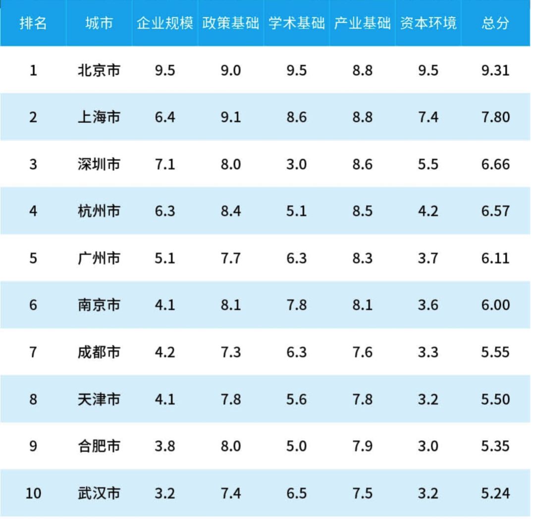 成都、杭州自不必说,合肥、济南能过入列,除了自身在人工智能方面的基础,恐怕与国家战略层面对于省会城市的更加倚重有一定关系。