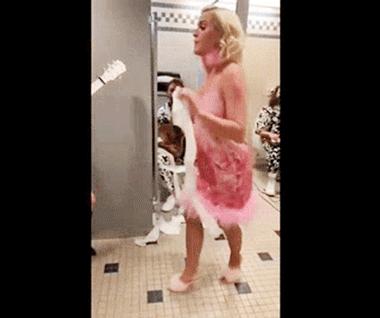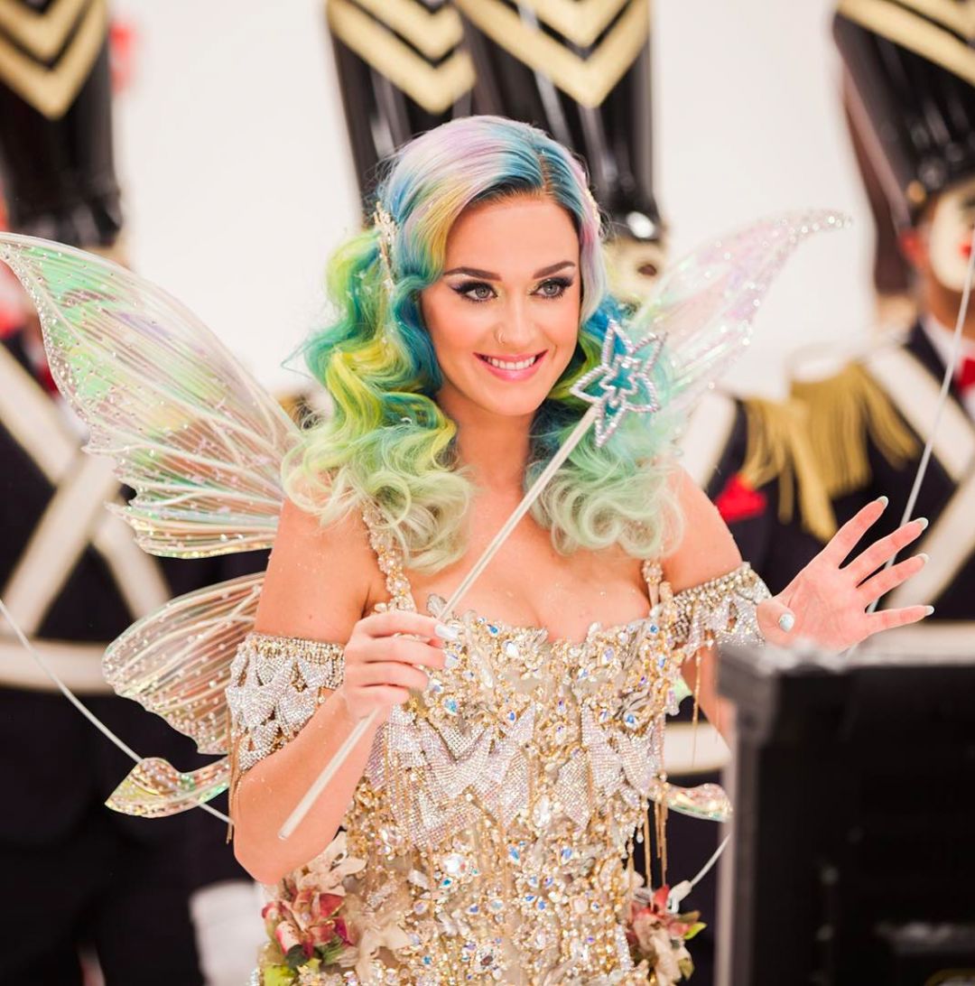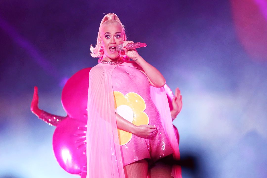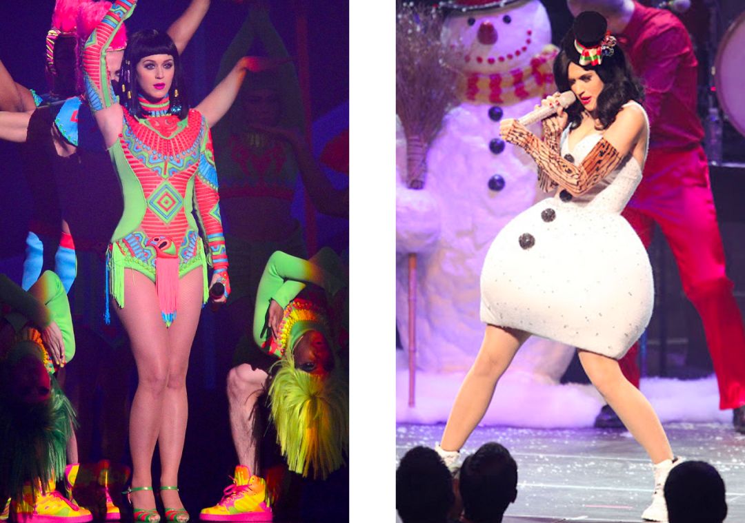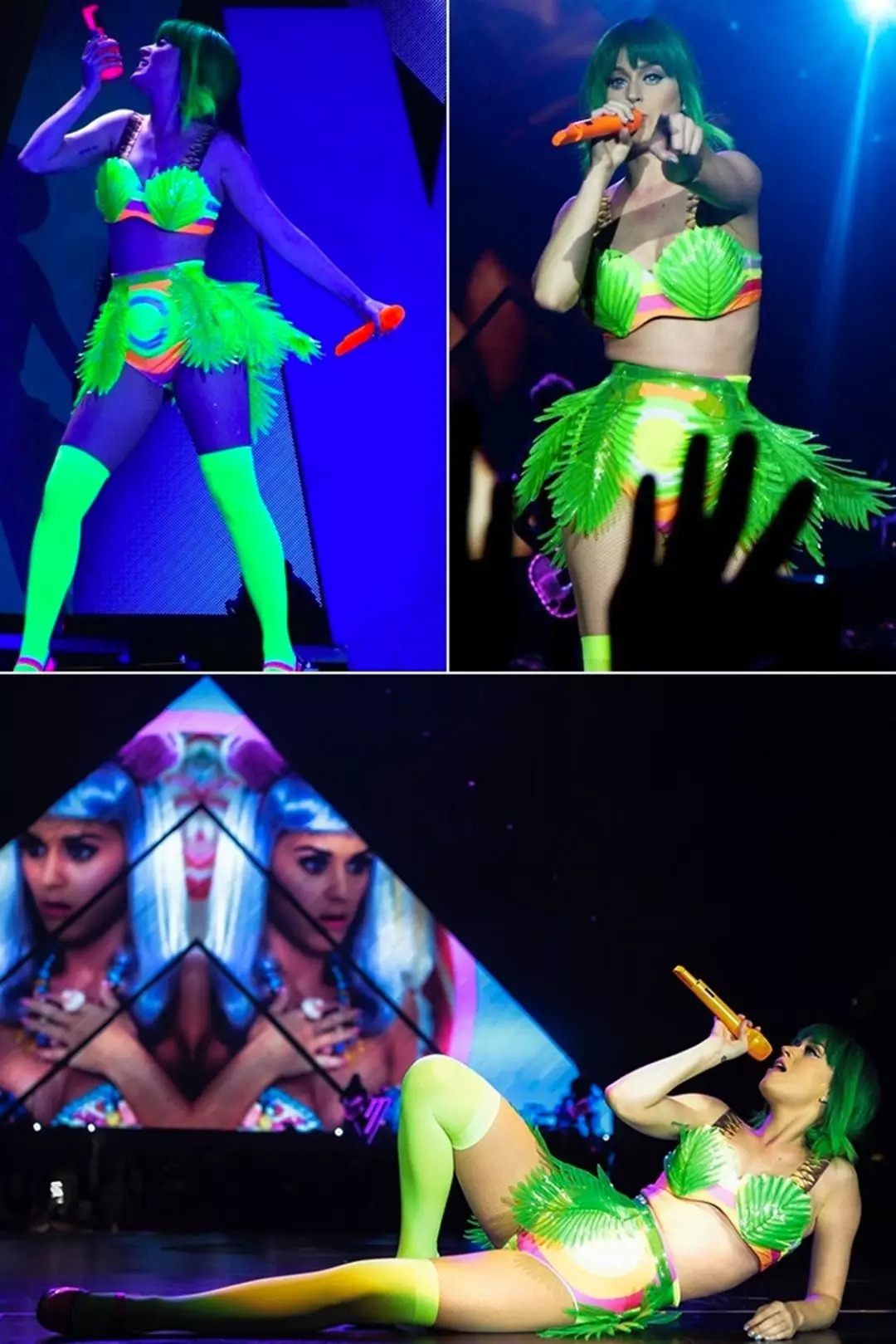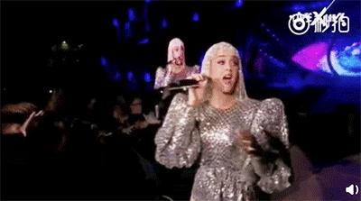 穿着高跟鞋,打扮得粉粉紫紫的,在台上又跑又跳……而且,《Roar》、《Firework》,唱得也太稳了吧!
