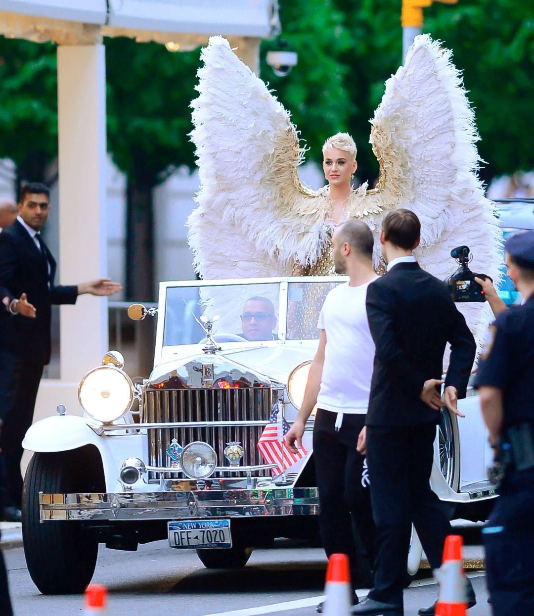 前年Met Gala,她也当万圣节在过。穿Versace定制短裙、长靴,戴着大翅膀,扮成没有喙的雷震子挥着翅膀的女孩,