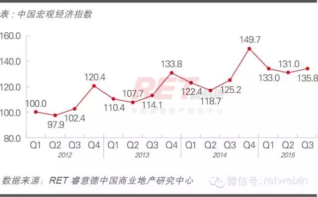 2015年第三季度,中国宏观经济指数135.8,上升4.8点,环比上涨3.7%,同比上涨8.5%,宏观经济平稳增长。