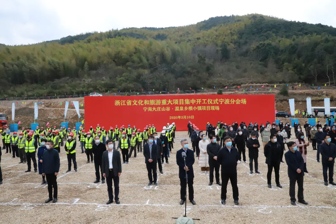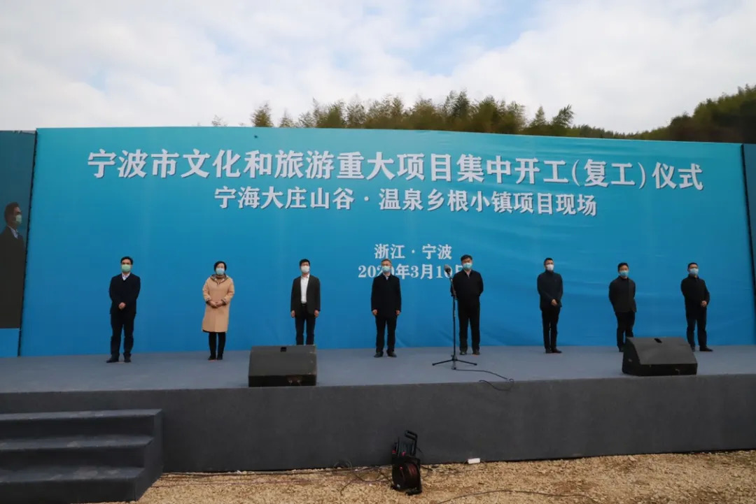 3月10日,浙江省文化和旅游重大项目集中开工,宁波市文化和旅游重大项目集中开工(复工)仪式在宁海大庄温泉乡根小镇项目现场举行,并同时作为全省文化和旅游重大项目集中开工宁波分会场。市委常委、宣传部部长李军,市文化广电旅游局党组书记、局长王程,县委副书记、代县长滕安达,县委常委、宣传部部长叶秀高,副县长王鸿飞参加。市文化广电旅游局领导、各区县(市)及相关功能区分管领导及文广旅游(体育)局主要负责人、宁海县重点文旅项目代表等参加活动。