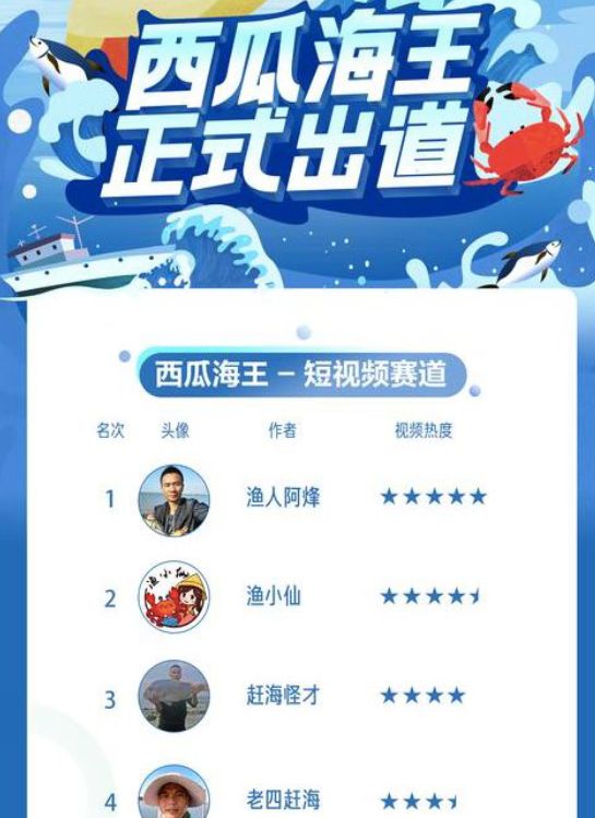 直到2019年6月,西瓜视频发布“西瓜海王挑战赛”,评选阿烽为短视频赛道的“西瓜海王”,并推出赶海达人征集令,招募新创作者。赶海创作人才渐渐建立起对品类的认知以及对平台的归属感。