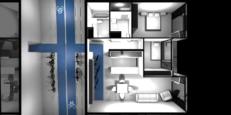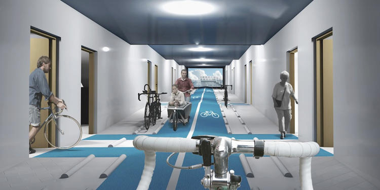 “正如现代都市的郊区独栋房屋带有车库一样,居民公寓也应该设计得方便自行车入户停泊。”Fleming解释说。