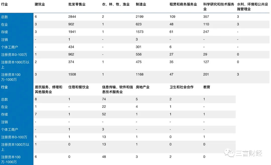 经梳理数据,这5600余家企业中,处于“在业”状态的有1718家;处于“存续”状态的则有3894家;处于“注销”状态的有4家。另外,在这5600余家企业中,包含个体工商户共计745家。