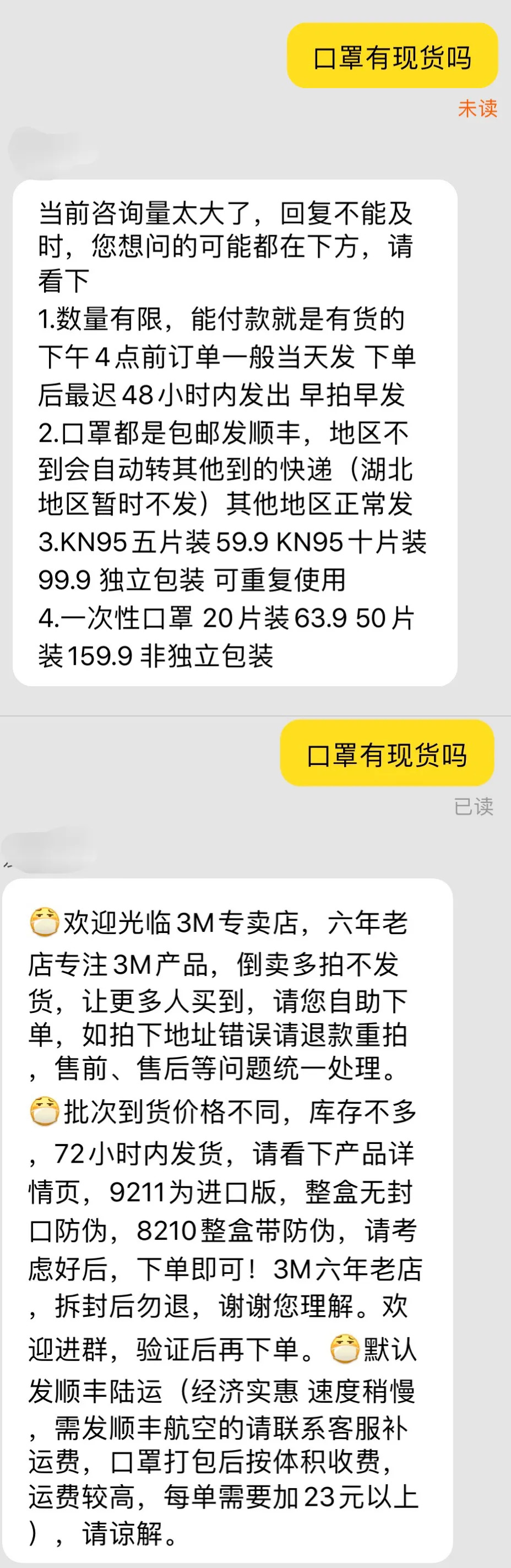 售卖口罩的商家均表示只要用户能拍下购买的,就均有货。不过,目前并非全国各地都发货,部分商家不提供湖北等地邮寄服务。