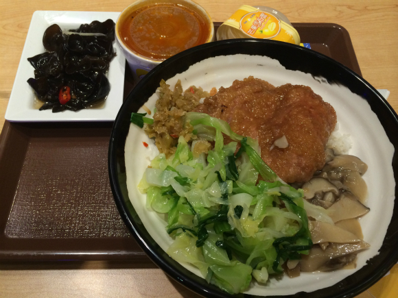 实验员当时已经很饿了,觉得什么都好吃,给味道打分,如果满分10分的话,可以打9分,卤汁大排不油、不咸,肉质比较嫩,分量也够足。而小伙伴则表示,单从味道来说6.5分,考虑到这是一份工作快餐,可以打7.5分。