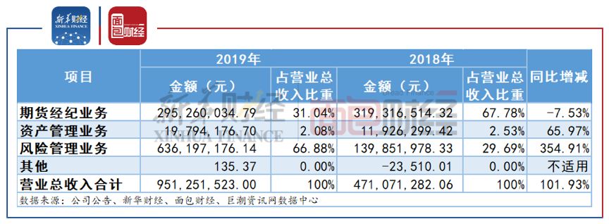 2019年,瑞达期货的业务结构出现明显改变,具体表现为期货经纪业务萎缩,风险管理业务激增。如何提高盈利能力,仍是公司面临的主要问题。