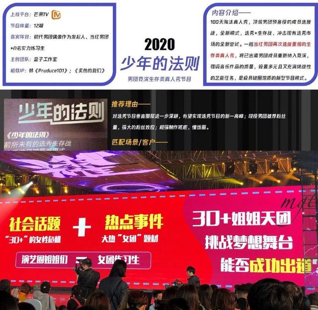 而于今年加入群聊的芒果TV,也准备了两档属性各异的偶像团体选秀类节目。其中,《少年的法则》嘉宾阵容由初代男团偶像作为发起人、当红男团n名实力练习生组成,用100天展开一场顶级男团预备役的成员选拔战,其中不乏已出道男团成员被重新纳入竞演。该节目将在今年与优酷的《少年之名》共食男团市场。