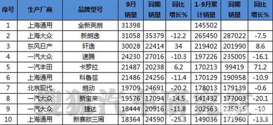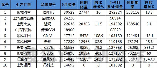 NO.3 2015年9月国内SUV/轿车/MPV销量榜出炉